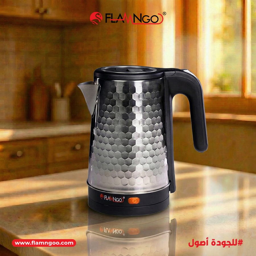 تصميم: جسم خارجي مضلع مقاوم للبصمة والحرارة، ومقبض بلاستيك عازل للحرارة