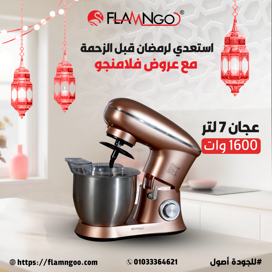 القدرة الكهربائية: 1600 وات لعجن كميات كبيرة بسرعة وكفاءة.
